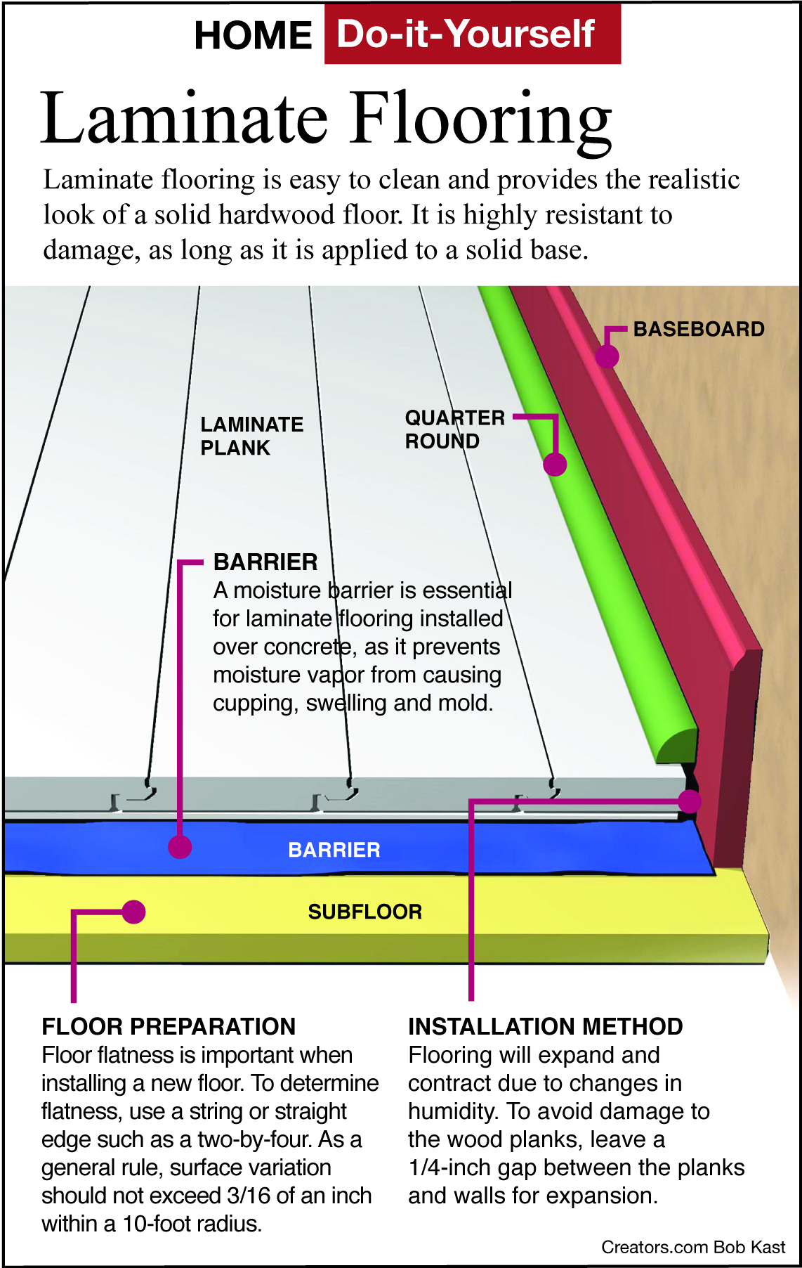 With the proper tools and instructions, laminate flooring can be installed by anyone with reasonable do-it-yourself skills. If you are a little apprehensive about tackling this project, first try to install the floor in a small area, such as a closet, and get as much information as possible before you begin on the larger room(s).