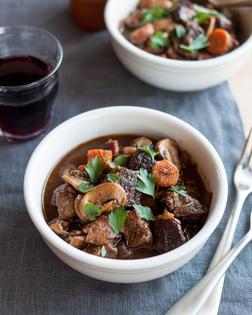 You can prepare boeuf bourguignon in the slow cooker or in a Dutch oven, both with excellent results. Either way, be prepared for a bit of prep work. This is not the kind of dish where the ingredients can be dumped together in a pot, but rather one that takes some time at the stove before you can "set it and forget it."