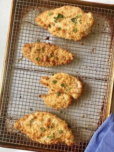 7. Place the chicken in a single layer on the heated wire rack. Bake until the breading is golden-brown and the thickest part of the chicken registers at least 165 F on an instant-read thermometer, 15 to 20 minutes.