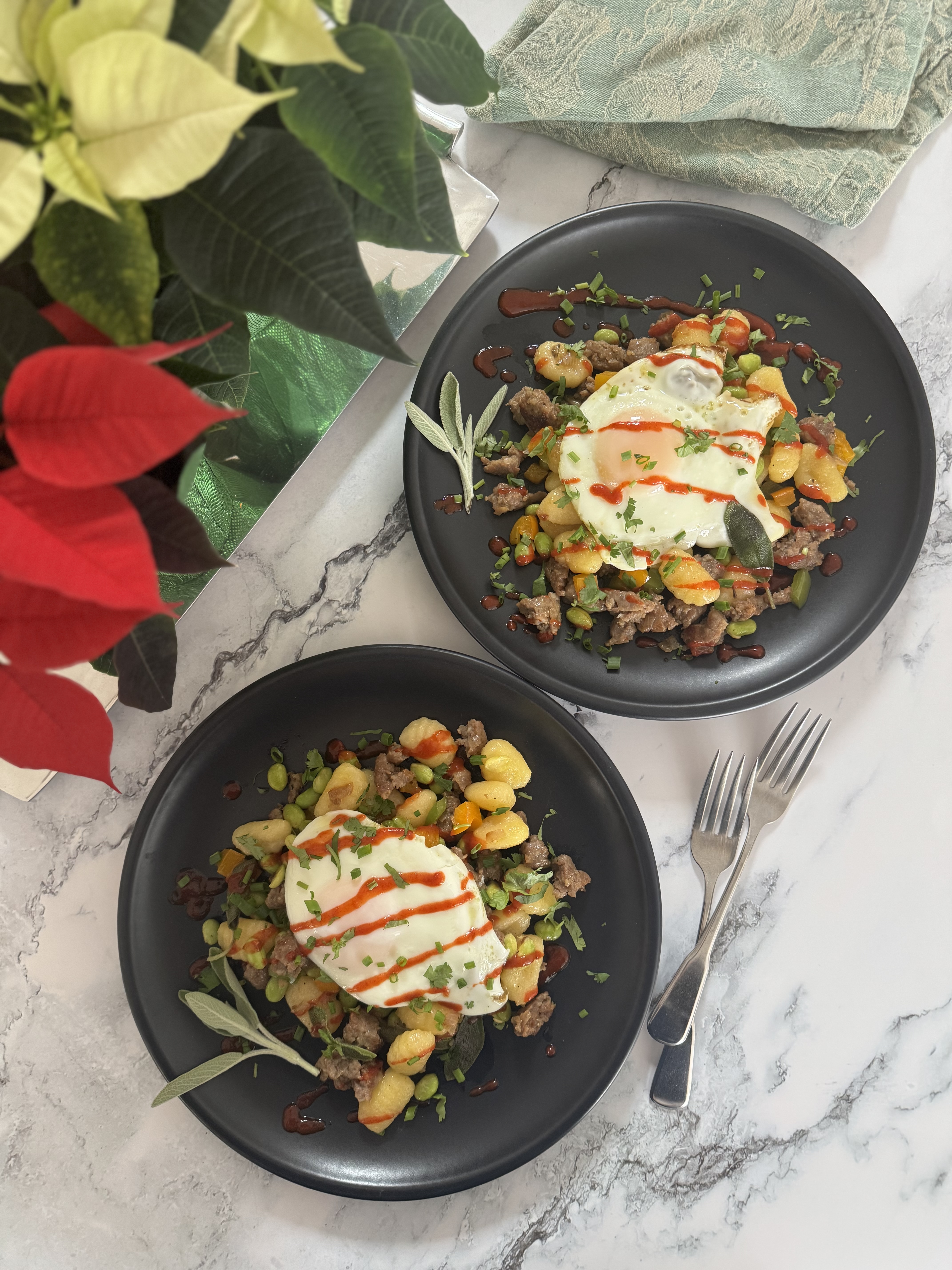 Breakfast Gnocchi with Sausage, Peppers and Sage