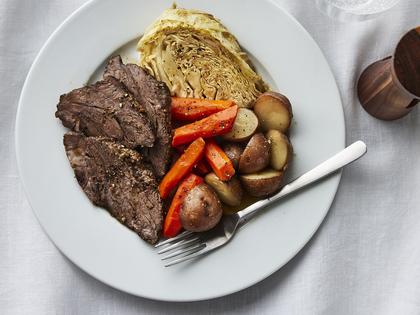 Corned beef is brisket that has been pickled in spices for days, but it is often high in sodium. To help control the salt level, we use pickling spice — a blend featuring mustard seed, coriander and black pepper — to achieve a similar flavor. A medley of cabbage, potatoes and carrots rounds out the dish for a hearty, cozy meal.