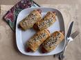 Our meat lovers will enjoy the same pastry, smeared with a spicy mustard mixture and rolled around a fully cooked sausage. An egg glaze and sprinkling of sesame seeds top the golden-encrusted sausage.