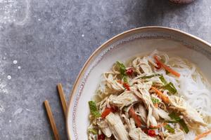 Busy week coming up? Cook up these easy poached chicken breasts infused with the flavors of the ubiquitous Vietnamese sauce nuoc cham in your slow cooker on Sunday. Then enjoy the leftover chicken three different ways over the days to come — ladled with the broth over rice noodles, layered with vegetables on a sandwich and mixed with mayo to ...Read more