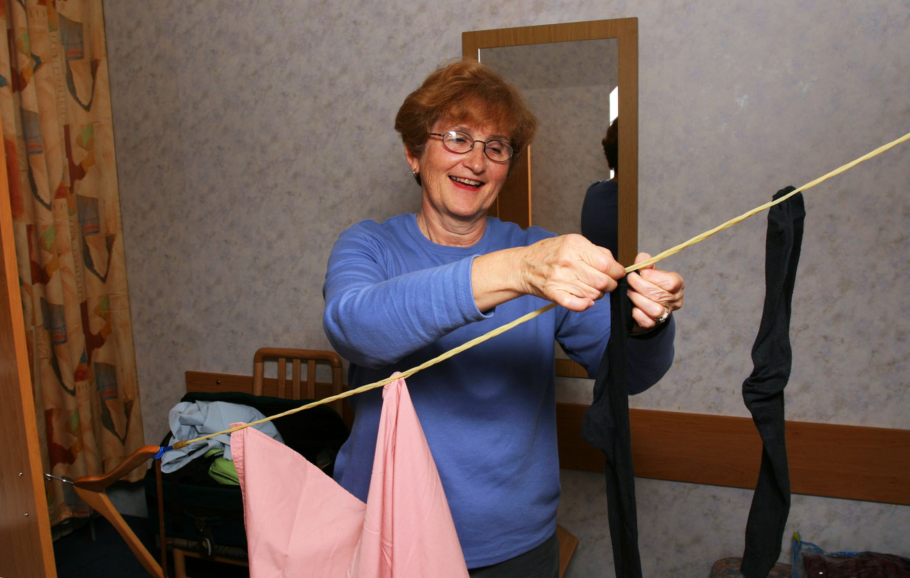 Another advantage of packing light is that you're unlikely to leave something behind in a hotel. Packing up to check out of a room is a kind of ritual for me. Putting on my socks, I wonder if I really need to wear them again, considering my laundry level like checking a battery or a gas tank. I spread out the cover of my bed so nothing gets lost in a big wrinkle, then corral stuff scattered around the room onto the bed before tucking everything into my bag. For a one- or two-night stop, I don't use the closet or drawers, so they don't need to be checked. I carefully survey the electrical outlets to be sure I didn't forget some recharging cord.