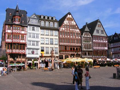 Many of the city's historic sights are clustered around Romerberg, the main square. The City Hall houses the Imperial Hall, where Holy Roman emperors celebrated their coronations. The cute row of half-timbered houses (rebuilt in 1983) opposite City Hall is typical of Frankfurt's quaint old center before the square was destroyed in World War II. From Christmas markets to violent demonstrations, this square is the heart of Frankfurt.