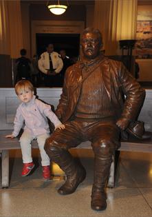 In the Theodore Roosevelt Memorial Hall you can pose on the bench next to the life-size statue of Theodore Roosevelt as he looked during a 1903 camping trip to Yosemite with naturalist John Muir. The spot is bound to become the new favorite museum photo op. Inside the hall, show the kids the tiny bird eggs Roosevelt donated to the museum when he was 13, along with his childhood journal.