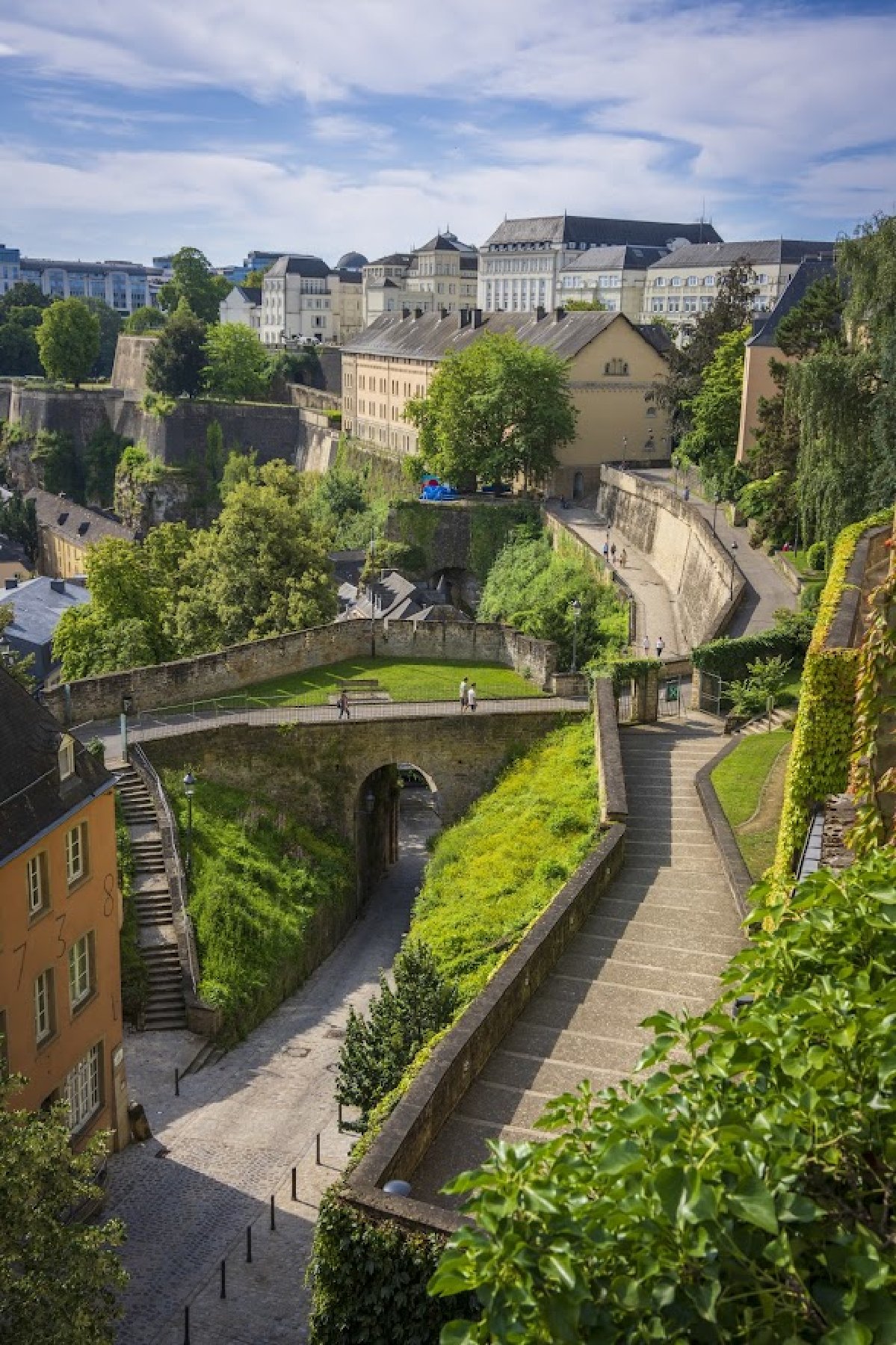 From the Casemates, you can emerge to wander the 17th century Chemin de la Corniche, a breathtaking elevated promenade meandering along the Alzette Valley's 17th-century ramparts from the Bock Promontory, fondly referred to as "the most beautiful balcony of Europe."