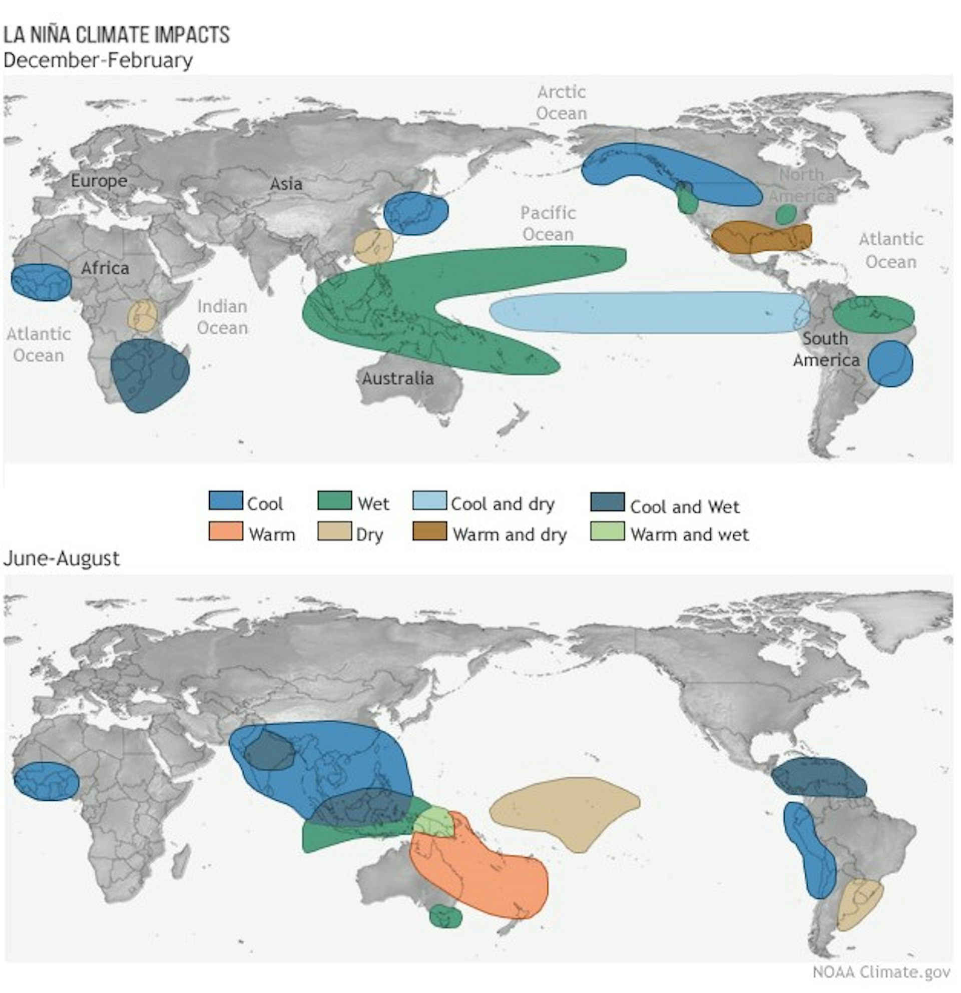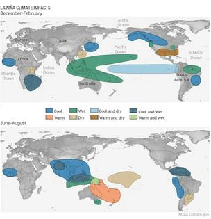 The impacts of El Niño and La Niña are almost a mirror image in the Southern Hemisphere.