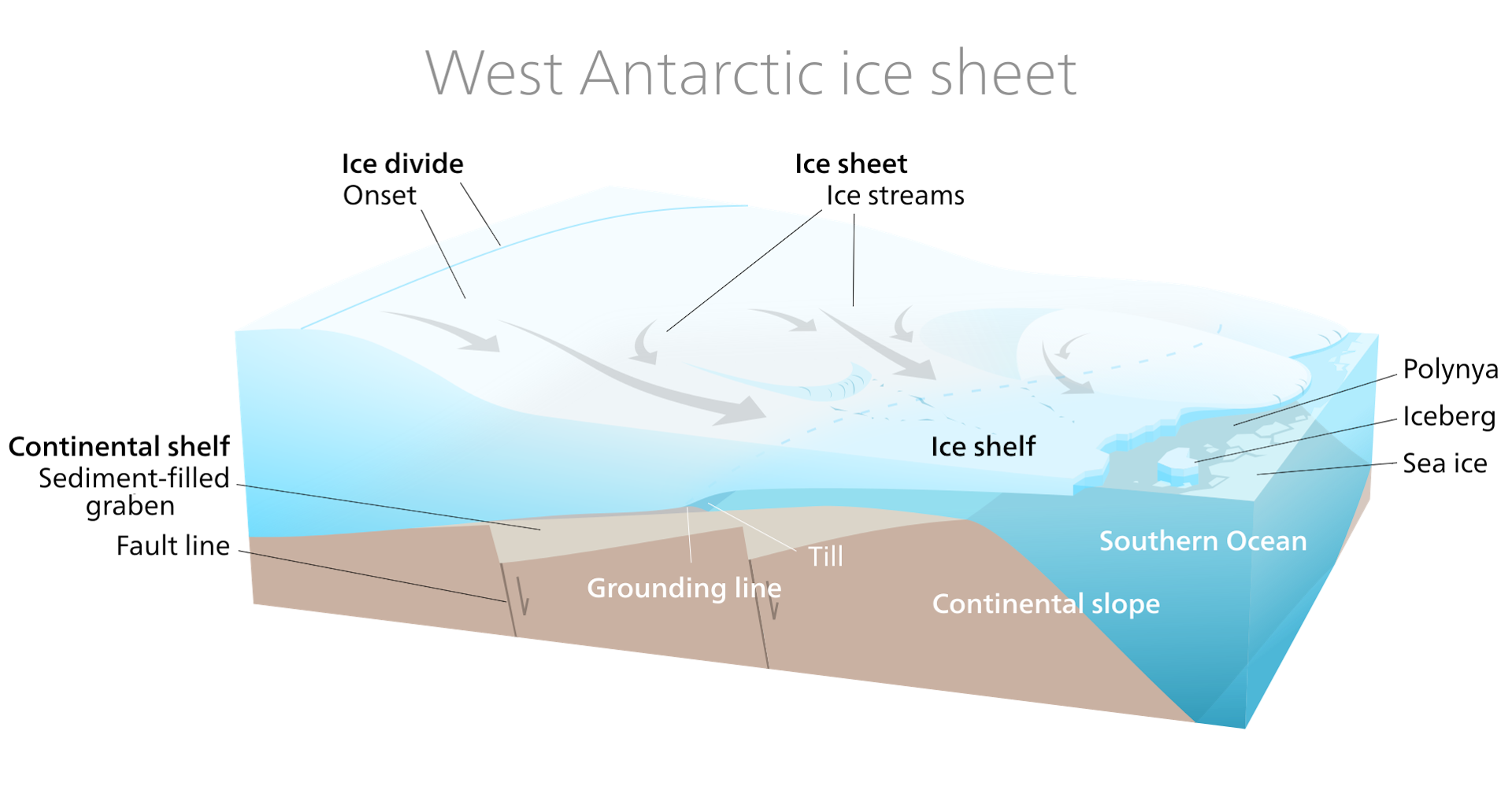 Ice-ocean interactions explain most of the recent ice mass loss so far. Antarctica is a very cold place, so atmospheric warming isn’t having a large effect yet. But warm ocean currents are getting under the ice shelves, and they are thinning the ice from below, which weakens the ice shelves. When that happens, the ice streams flow faster because there is less resistance.