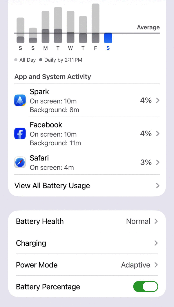 If you go into the phone’s Settings and select Battery, you’ll see the battery information, including a list of recently used apps and how much of your battery those apps are using.