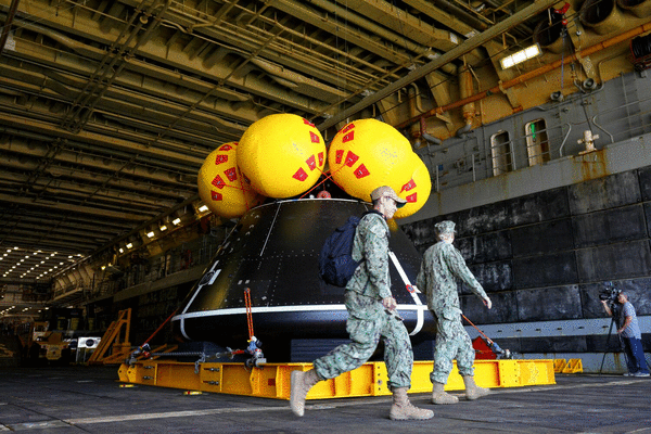 Five bright airbags will deploy shortly after splashdown to keep the capsule upright and make it easier for the Murtha’s crew to collect the astronauts and place them on the ship. They will then be transported by helicopter to Naval Air Station North Island, put on a jet, then flown to Houston, where they will hold a post-trip news conference.
