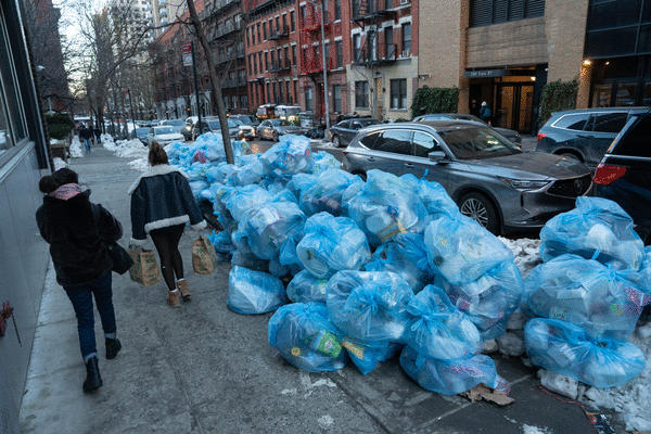 NEW YORK — Mounds of garbage have piled up on NYC streets as the city struggles with freezing temperatures and piles of ever-more-disgusting snow.