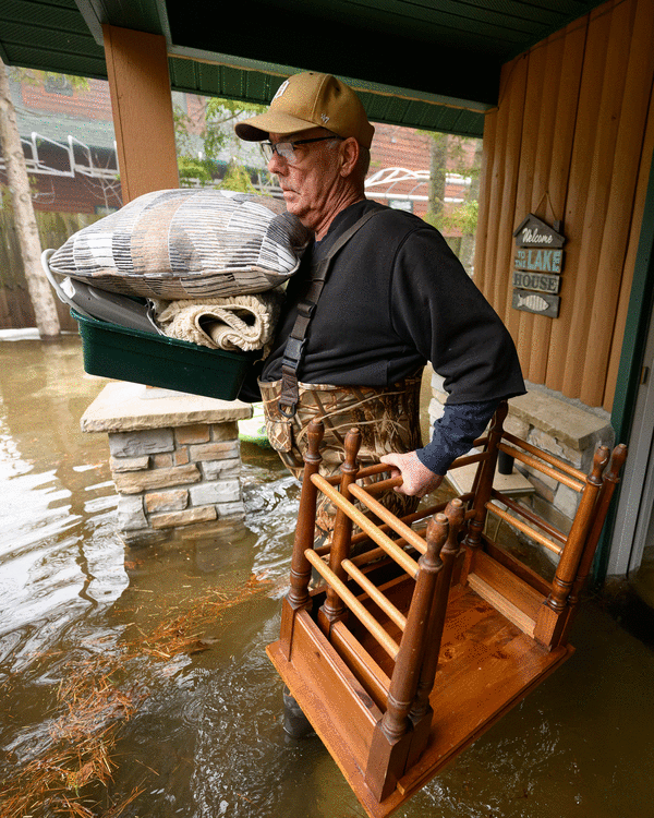 There was also flooding on nearby Burt Lake, where water was surrounding some homes and overflowing inlets and canals. Near the Sturgeon River, one home had water steadily rising along its side, buoying a stored kayak floating near the house.