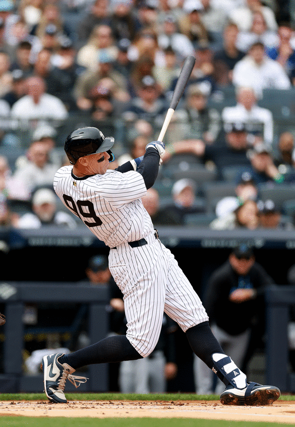 He finished 3 for 24 with 11 strikeouts during the Yankees’ season-opening six-game road trip to San Francisco and Seattle, but it took only three pitches in his first Bronx at-bat for Judge to homer.
