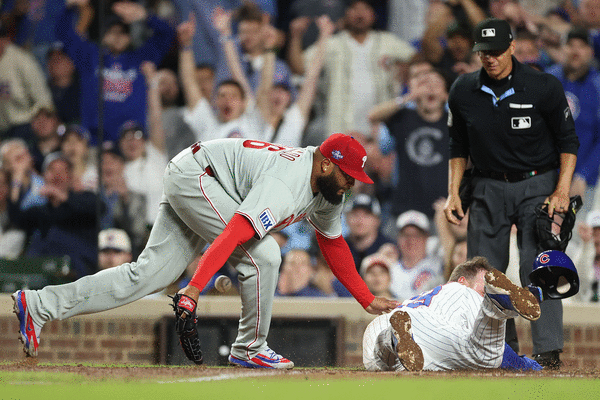Defense can’t overcome walks, though, and Phillies pitchers issued 10. In addition to Luzardo’s four, Orion Kerkering and Tanner Banks walked two apiece, and Tim Mazya and José Alvarado walked another. The Cubs’ first run of the game came in the fifth on a bases-loaded walk from Kerkering.