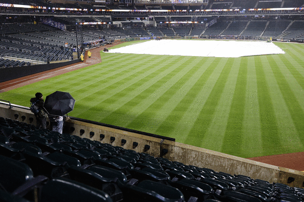 NEW YORK — Crash Davis got the Durham Bulls a rainout, but Flushing Bay got the Mets one Saturday.