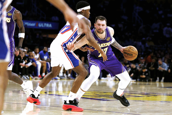 Doncic was injured late in the second quarter of the Lakers' win over the Philadelphia 76ers on Thursday night. He threw a pass to Maxi Kleber that was a turnover, turned to run back on defense and immediately grabbed his left hamstring.