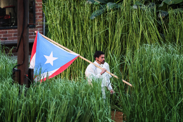 To the bomba beat of “El Apagon” — which started out with Martin on “Lo Que Le Paso A Hawaii” — Bad Bunny stood atop a utility pole that rose above the faux sugar cane field and palm trees. He rapped about the power failures that have plagued the island and which he has insistently called attention to since Hurricane Maria in 2017.