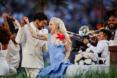 His dazzlingly choreographed performance transformed the field into sugar cane fields (actual people dressed as sugar cane plants) with a casita at the center that Bad Bunny danced on top of, before dramatically falling through the roof. An allegedly real wedding was officiated, Bad Bunny crowd surfed, carried the Puerto Rican flag, stopped at coco frio and taco stands, said hello to a pair of sparring boxers, paid tribute to reggaeton stars Daddy Yankee and Don Omar, and packed in portions of 12 songs in just under 13 minutes.