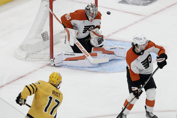 Lord knows, they tried in the third period Monday. Desperate, they fired seven shots at Flyers goaltender Dan Vladař in the frame’s first six minutes, and Vladař stopped them all. He threw his left pad in front of a Samuel Girard wrist shot from the slot, then kicked away a Crosby one-timer from the right circle. He finished with 27 saves. He was perfect, and the Flyers were as close as could be. The Penguins kept coming and coming, and Vladař didn’t care, and ironically enough, it was a power play, on a Travis Konecny interference infraction, that spelled the end for them.