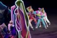 The main business took place in the arena. Directed by Marco Balich, who specializes in big shows, it was elegant, in a sleek, clean-lined Italian way, and over the top, also in an Italian way. Color played a great part, the program beginning in white (a balletic interpretation of Antonio Canova's sculpture "Psyche Revived by Cupid's Kiss"), moving to black and white (a nod to Fellini's "La Dolce Vita" and its paparazzi), and then to a riot of color, as giant floating tubes of paint sent streams of colored fabric stageward.) There were dancing human bobbleheads of opera composers Verdi, Puccini and Rossini, as if they were mascots for Team Rigoletto, Team Tosca and Team William Tell. There were dancing gladiators and moka pots, a phalanx of runway models dressed (in Armani) in green, white and red, to represent the Italian flag.