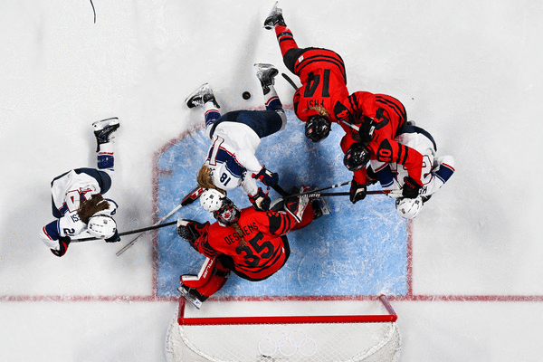 Team USA was down 3-0 in the third period but scored two goals to tighten the game. Late in the period, Jocelyne Lamoureux rushed the net and ended up knocking over the Canadian goaltender. Canada didn’t like that. Soon, a multiplayer brawl broke out that included Lamoureux’s twin sister, Monique.